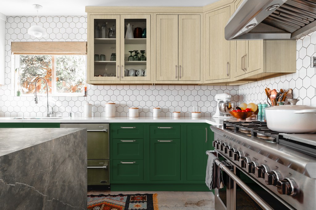 ∙ Make one big statement: Another approach is to use one focus area, such as a wall or cabinets, to make a bold statement, and then complement it with soothing counterparts. This can be achieved by using a bold TFL panel such as Conifer (K68) for the big statement, and subtly softening it with a Elemental (K71).