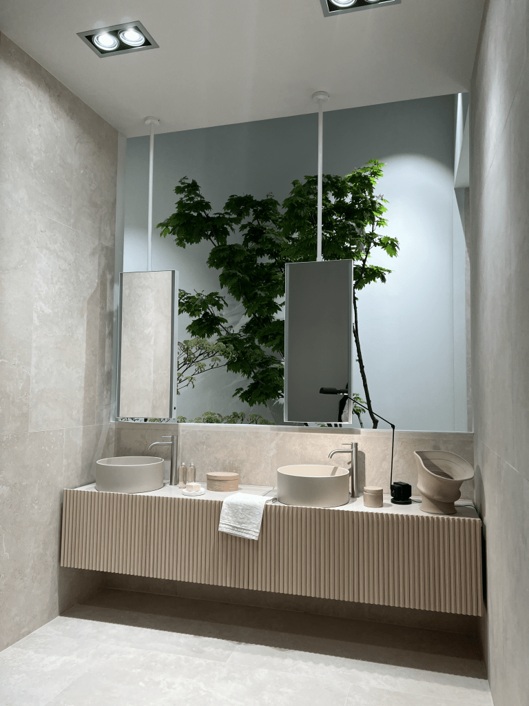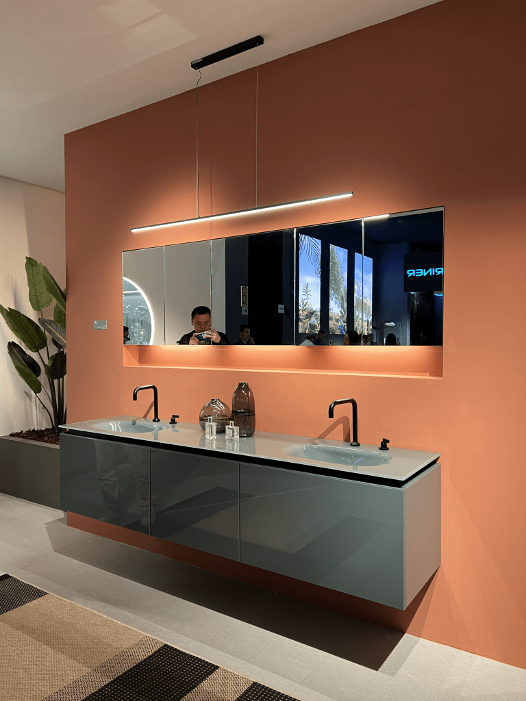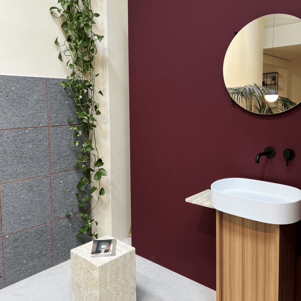 Imagine: a sea of green hues, with shades ranging from the soothing tones of mint to the earthy richness of olive. At Salone Del Mobile, solid colors took center stage, giving spaces depth and character. Not just any green stole the show – it was a green with touches of blue and gray, like our Serenity green. This color palette, reminiscent of a tranquil oasis, brought a sense of calm and tranquility to every corner of the show. Let’s not forget Marsala, a rich wine color, and Sand, the perfect balance of gray and warm beige – two colors that added warmth and sophistication to the decorating landscape, proving that sometimes, less really is more.